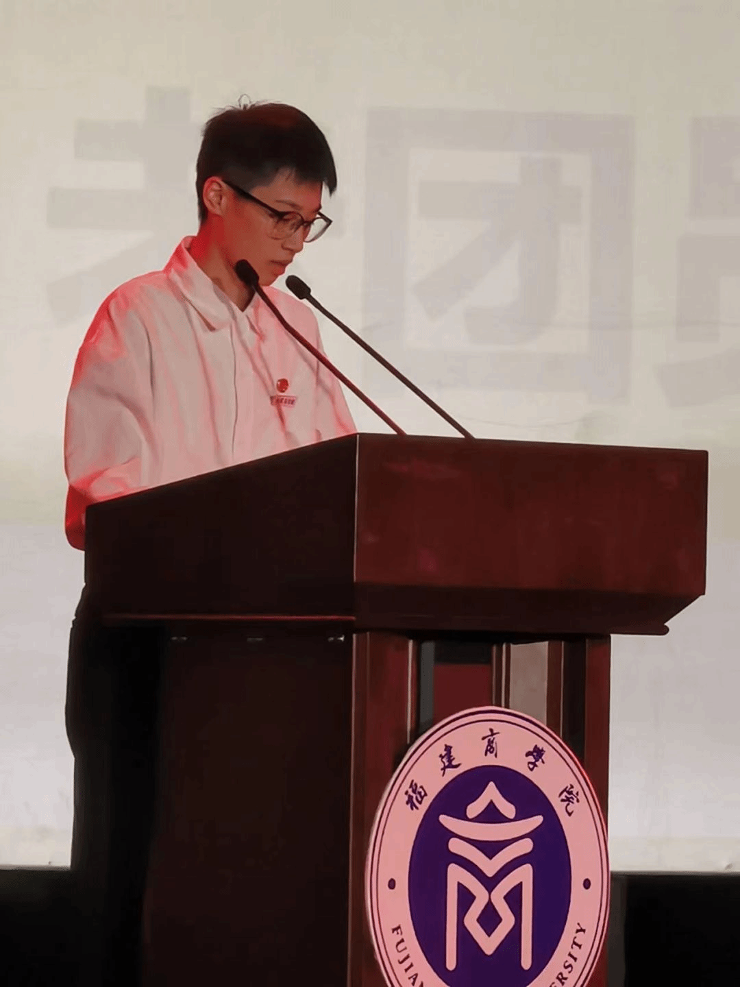 讲台上,林倩同学结合学习贯彻习近平新时代中国特色社会主义思想和党的二十大精神,讲述自己入学三年以来的学习成长故事,分享自己在大学生活中经历与感受。她建议学弟学妹在未来大学生涯规划中要“走得远”、“沉得深”、“站得稳”,积极参加校园文化活动、科研活动及社会实践活动,在实践锻炼中沉淀担当,在知行合一中淬炼初心。林倩表示,自己现在的所有殊荣并不只是个人努力的结果,而是党和国家的政策、学校学院的培养和脚下这片热土,共同塑造出今天自信自强、勇毅前行的自己,也极大地鞭策自己在未来的成长旅途中,“仰望星空、脚踏实地”,走好脚下每一步路,努力为学院、学校、社会作出力所能及的贡献。